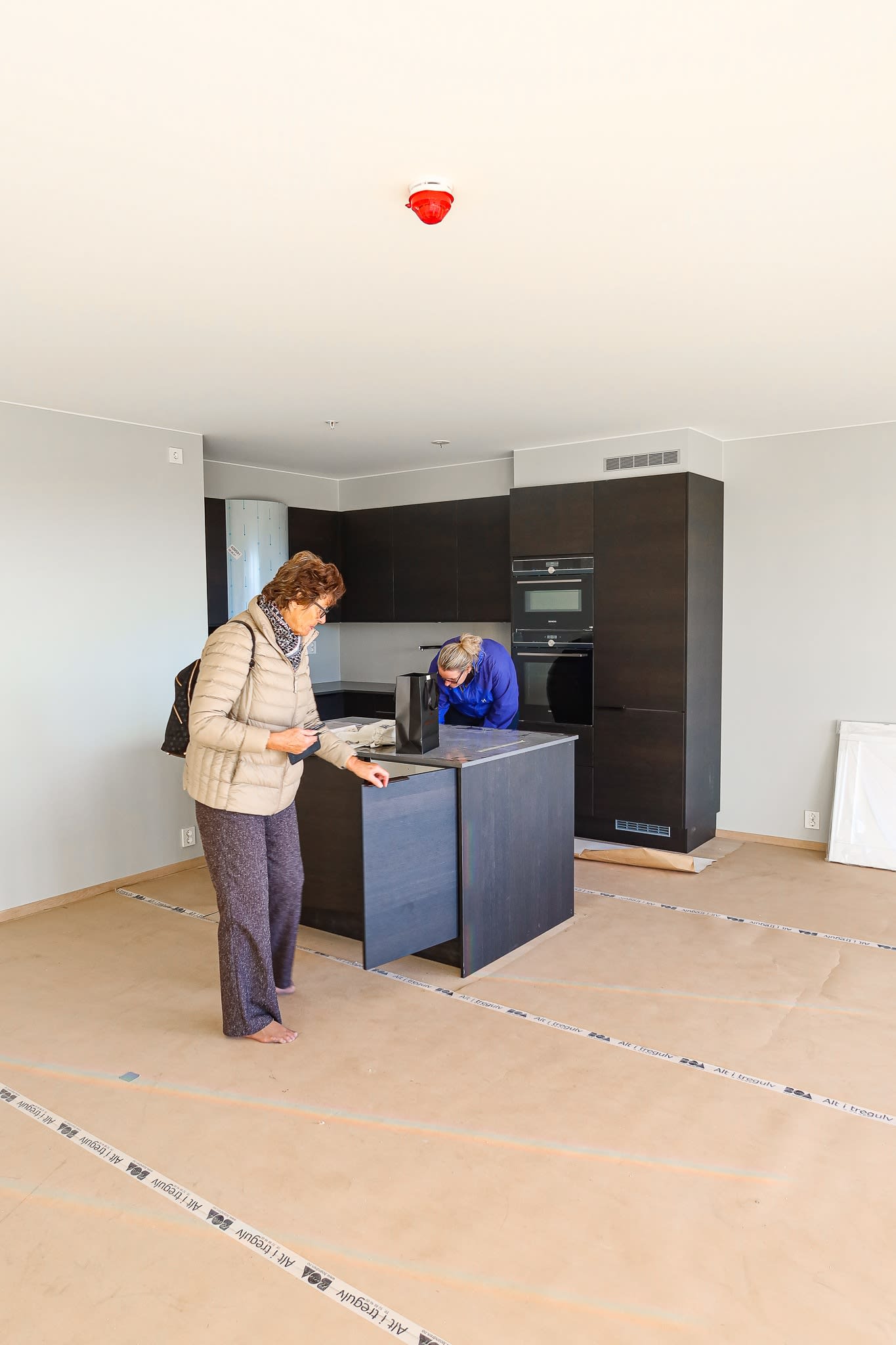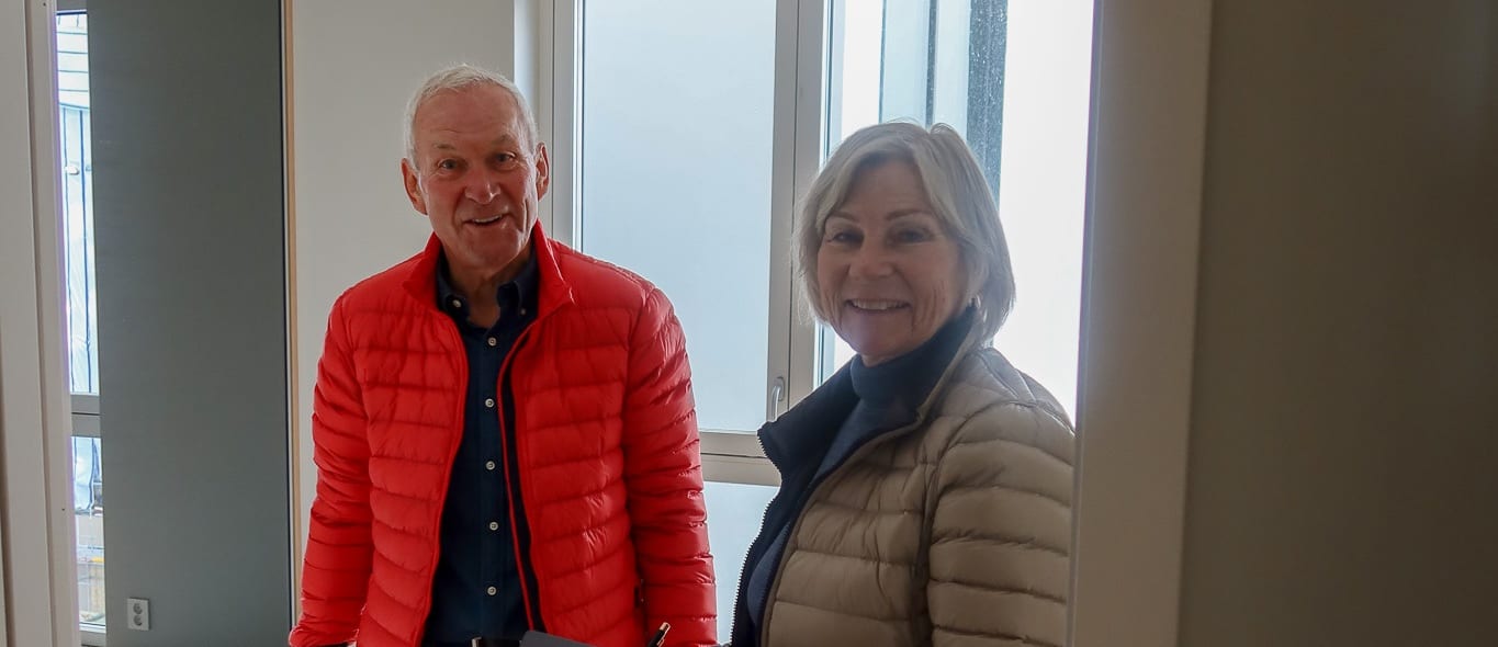 Synøve og Frank har besøkt byggeplassen utenfor gjerdene flere ganger for å følge med på fremgangen til prosjektet. De hadde derfor store forventninger til endelig å kunne se leiligheten fra innsiden av byggeplassen.