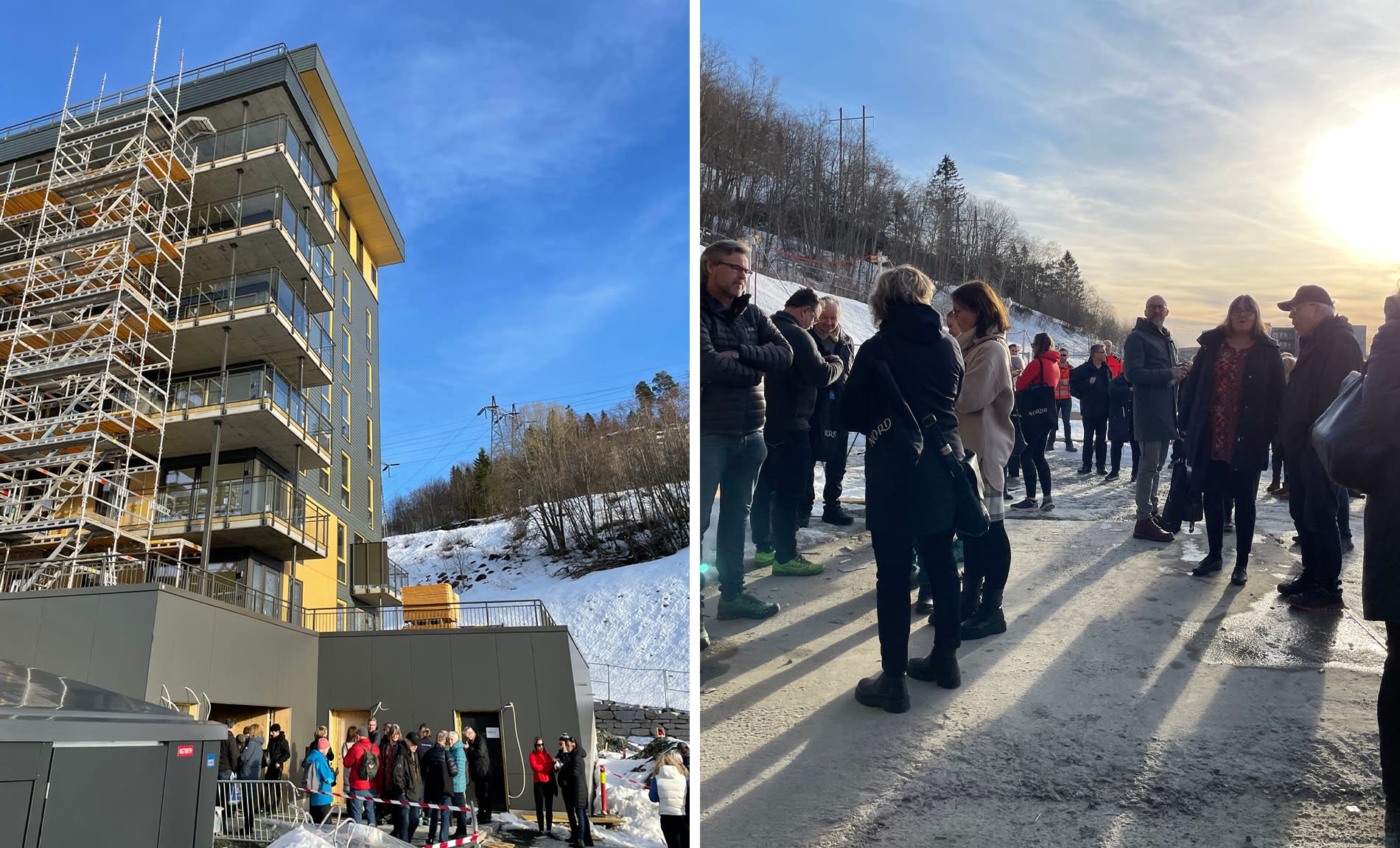 Robert og Else var langt ifra alene om å glede seg til innflytting i sommer. Det var mange spente fjes som møtte opp for å få en sniktitt inn i sine nye hjem.