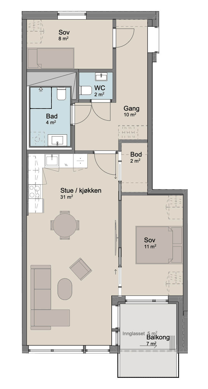 BRA kvm ink. innglasset balkong