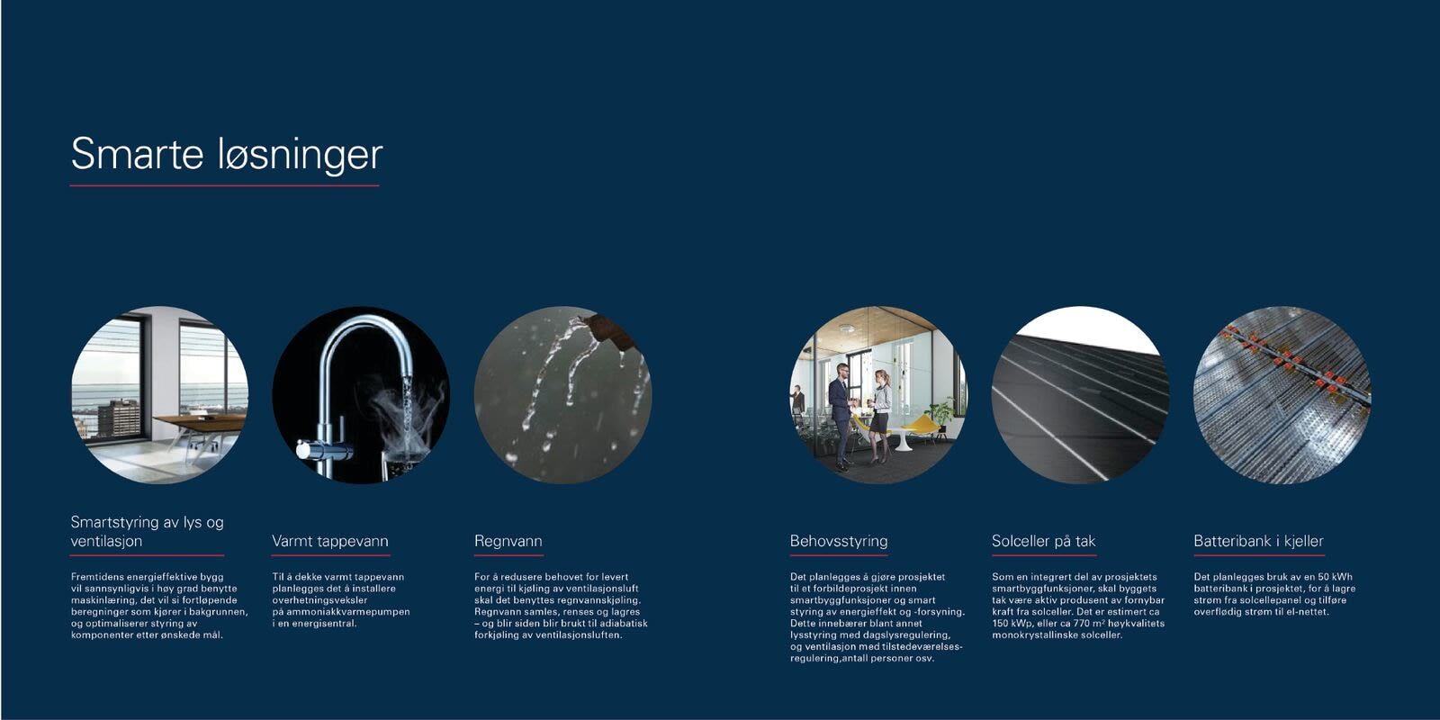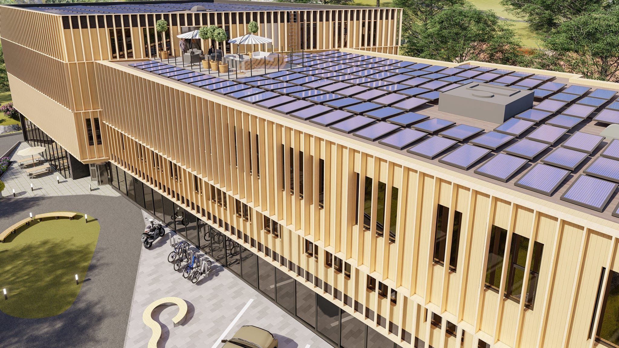 Bygget får solceller på tak, batteribank i kjelleren, og takhage.