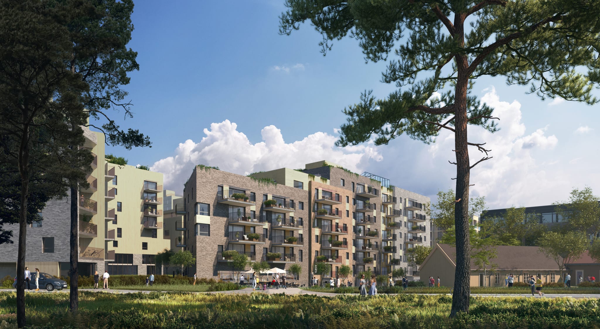 Prosjektet skal få en tydelig og litt annerledes profil med felles takterrasser for dyrking av mat, broer mellom bygg på takplan, og BREEAM miljøsertifisering.