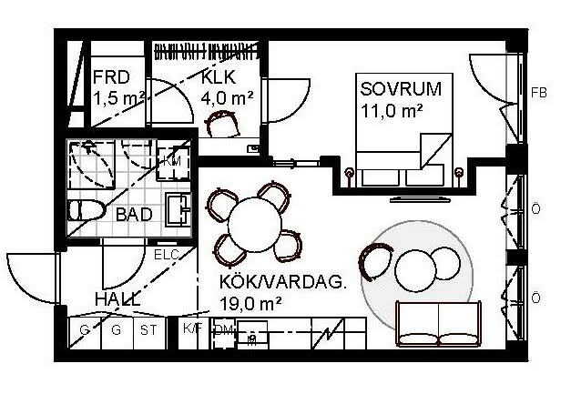 Fin välplanerad tvåa med sociala ytor i öppet samband och fransk balkong. Sovrummet avgränsas med smarta skjutdörrar och har en egen klädkammare där kläderna förvaras på bästa sätt. Stilrent kök med induktionshäll, inbyggnadsugn, mikro, integrerad diskmaskin samt kombinerad kyl/frys. Helkaklat badrum med kombimaskin för snabb klädvård á la maison.