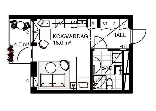 Luftig välplanerad etta som präglas av generös takhöjd, höga fönster med älvutsikt samt en härlig västerbalkong. Kök med all utrustning du kan önska och som bonus finns en platsbyggd kökssoffa med förvaring. Helkaklat badrum med kombimaskin för snabb klädvård á la maison.