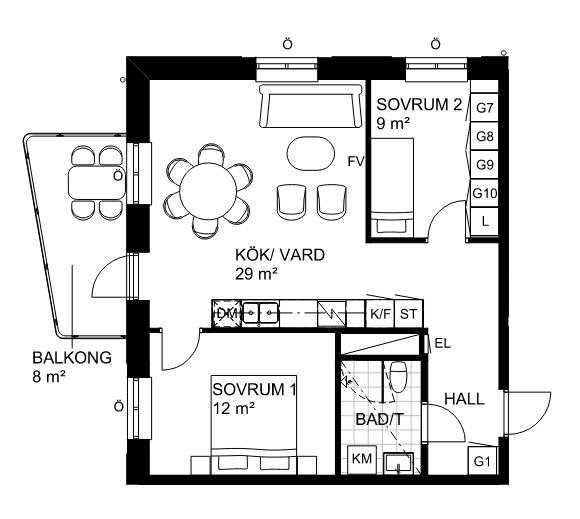 En klokt disponerad gavellägenhet i nordvästläge med många bra förvaringsmöjligheter i de båda sovrummen. Ljust och öppet samband mellan kök och vardagsrum där ljuset släpps in från två väderstreck. Balkong mot väster med möjlighet till härlig kvällssol och från de översta våningarna en strålande utsikt. Stilrent kök med induktionshäll, inbyggnadsugn, mikro, diskmaskin och kombinerad kyl/frys. Helkaklat badrum med dusch och kombimaskin. Förråd i entréplan
