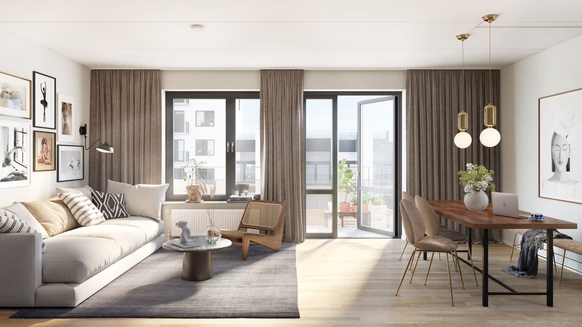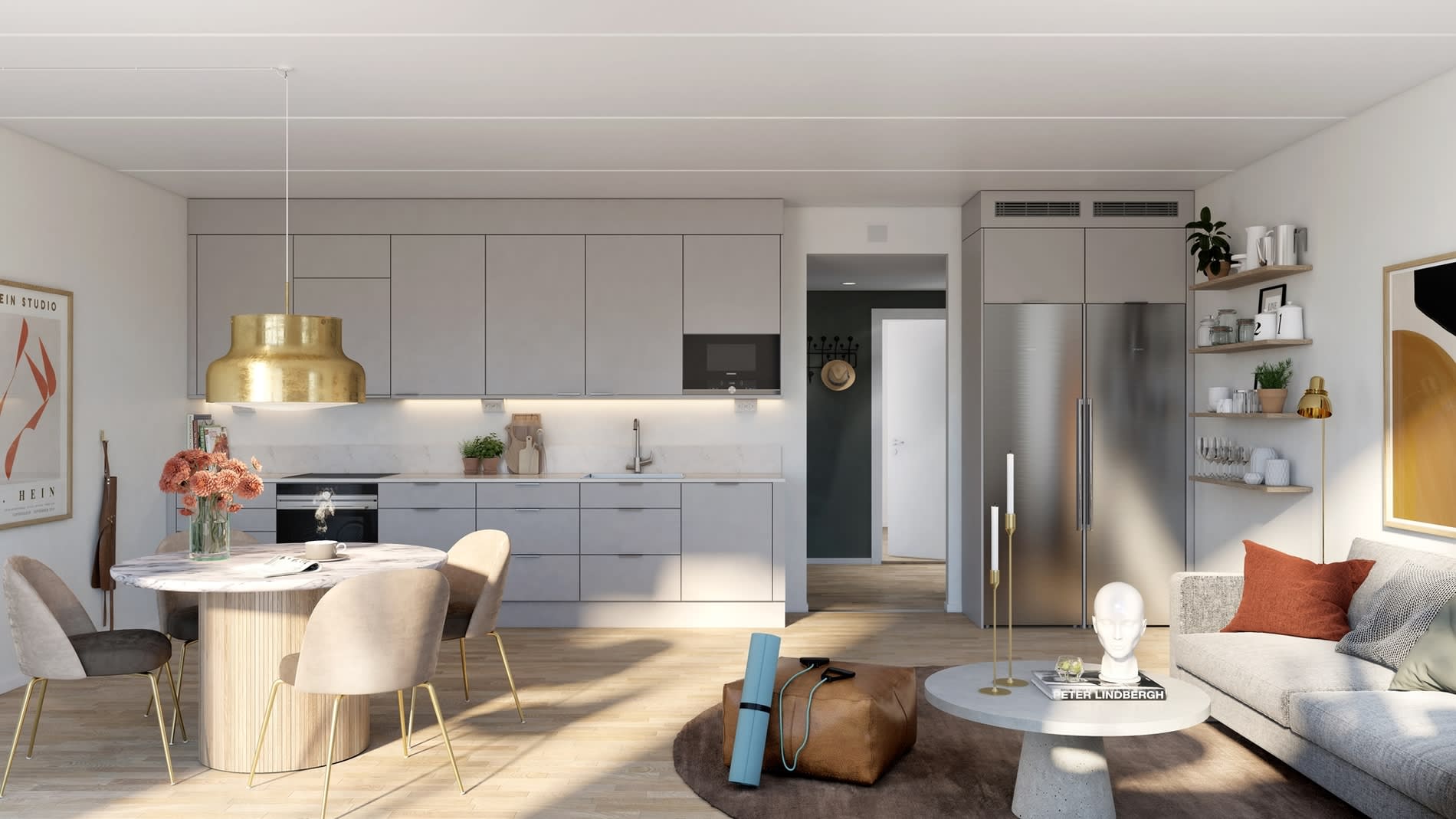 Sista lägenheten mot attraktiva Hälsingeparken! Välplanerad lägenhet med två franska balkonger och lättmöblerade ytor som möjliggör härligt socialt umgänge i bostaden. Vardagsrum och kök i öppen planlösning. Här finns goda möjligheter till en varierad möblering beroende på vardag eller fest med plats för både soffa och möjlighet till långbord. I det smakfulla badrummet finns både egen tvättmaskin och torktumlare. Sovrum med mycket goda förvaringsmöjligheter för kläder samt externt källarförråd.