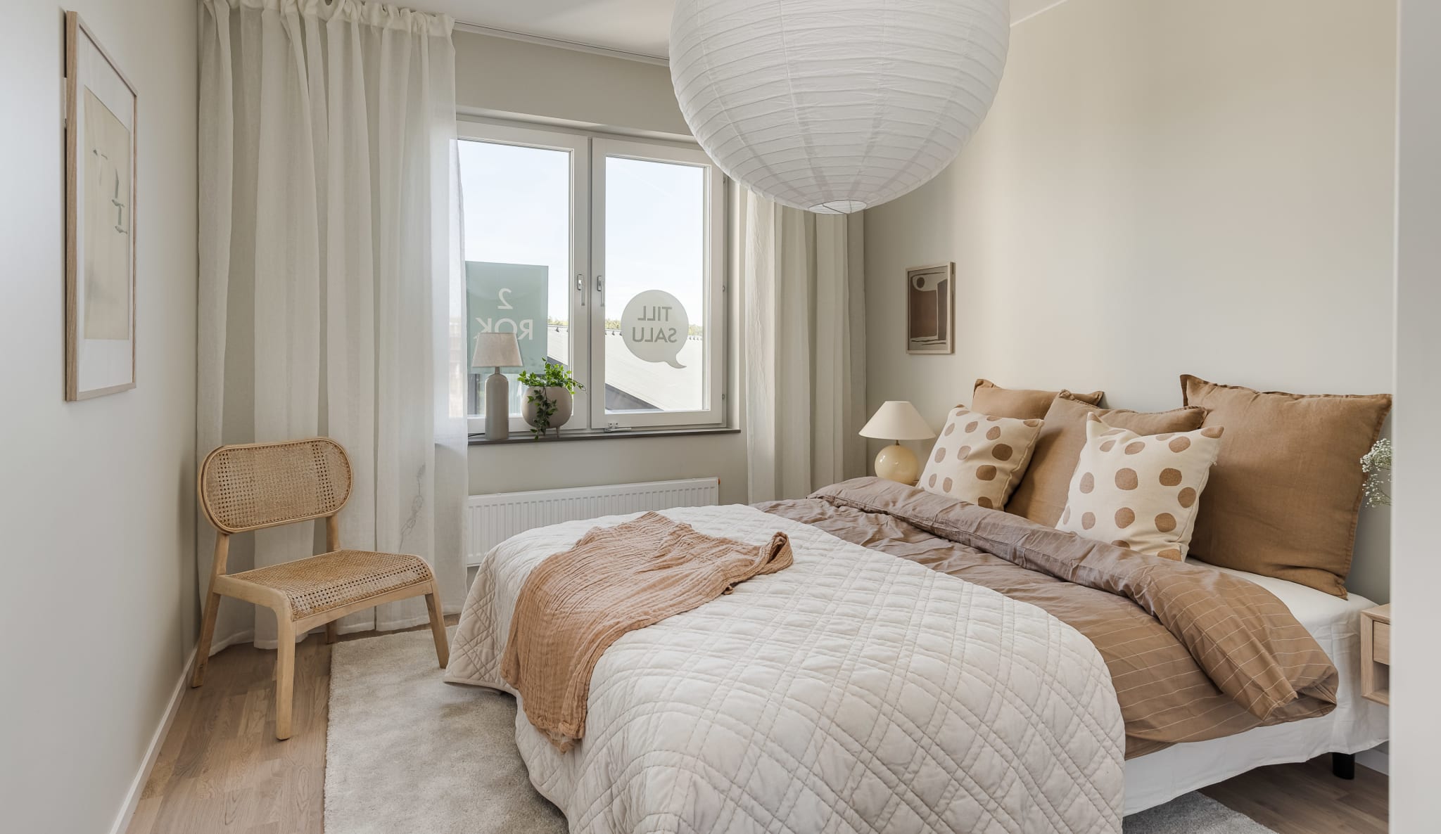 Våra tvåor á 45 har en genomgående planlösning vilket ger fönster i två väderstreck. Lägenheterna har ett rymligt sovrum med plats för större säng och bra förvaring i garderobsvägg.