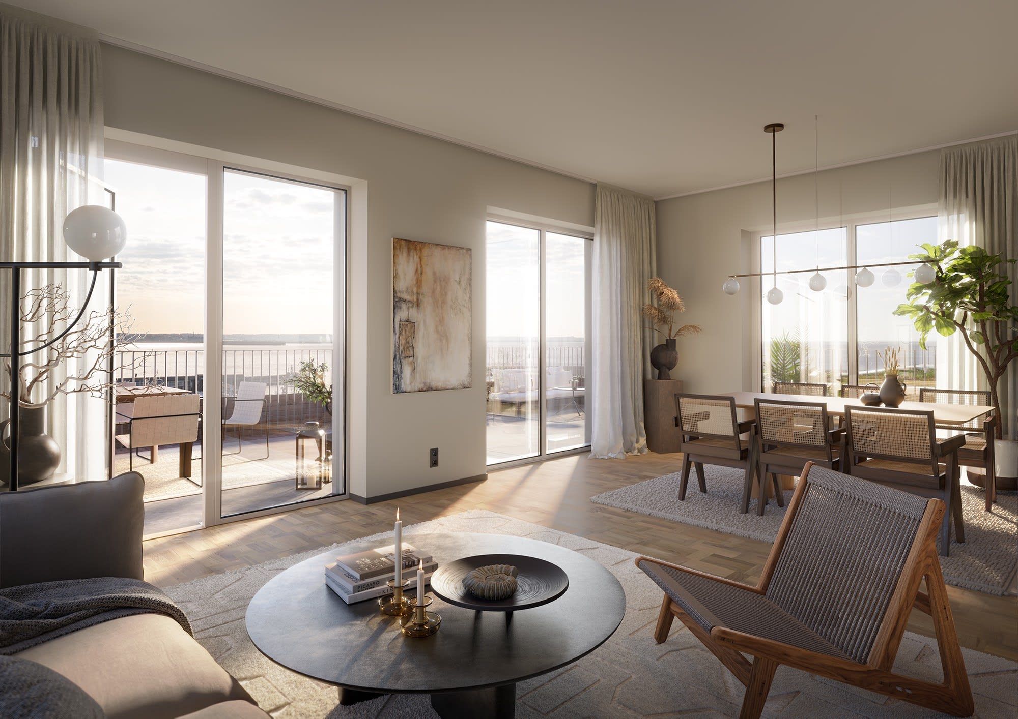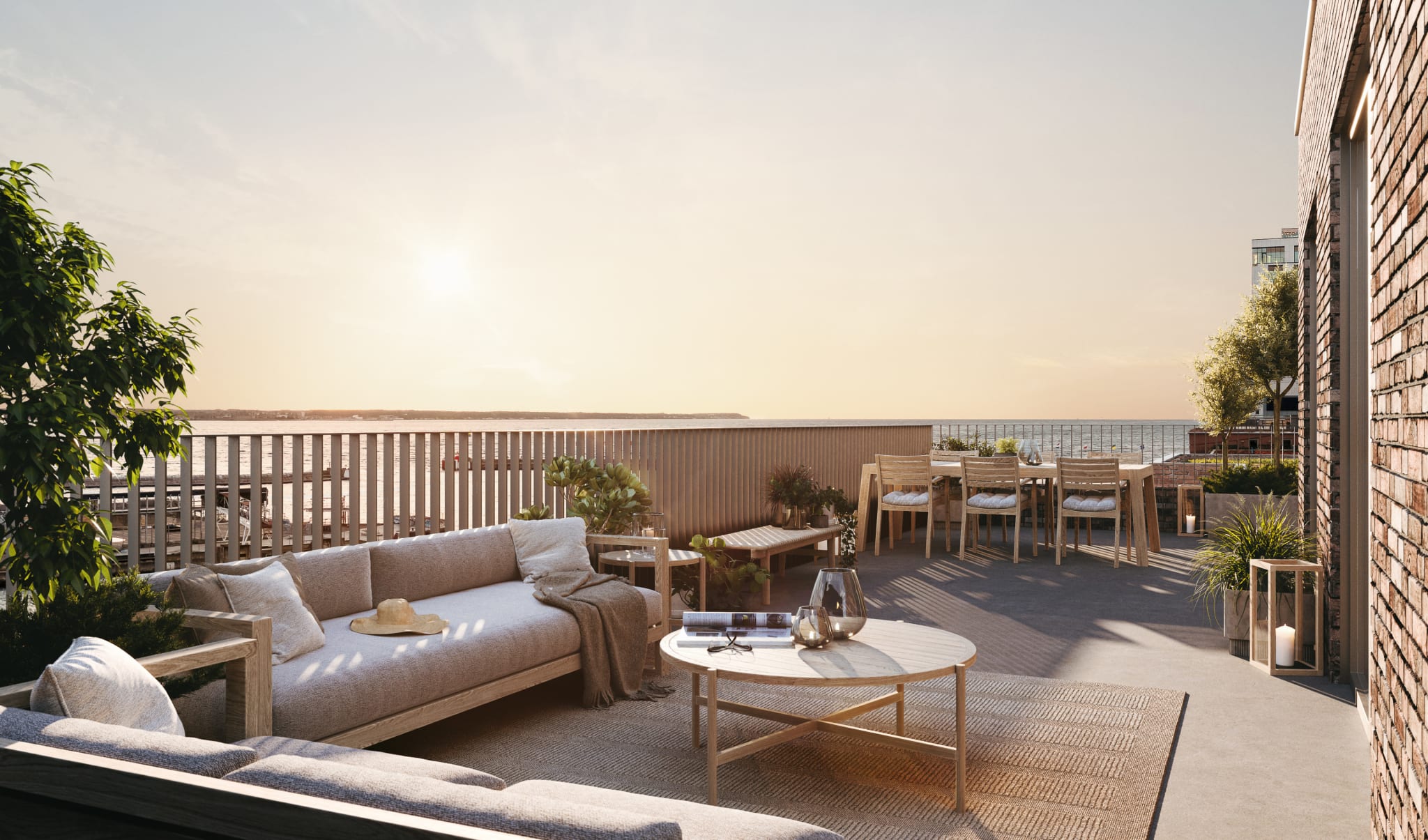 Våra penthouselägenheter är redan uppgraderade med det där lilla extra så som exempelvis kompositbänkskiva i kök. Men precis som övriga lägenheter i Oceanbryggan finns det möjlighet att sätta sin egen prägel. Det finns tre inredningsstilar att kostnadsfritt välja mellan. Varje stil inom konceptet är noga designat och genomarbetat för att hålla över tid och samtidigt kännas aktuellt väldigt länge. På projektets hemsida kan du läsa mer om vad som ingår i respektive inredningsstil, Äng, Fjäll och Fjord. Utöver det finns även möjlighet till egna val som du också kan läsa mer om på projektsida