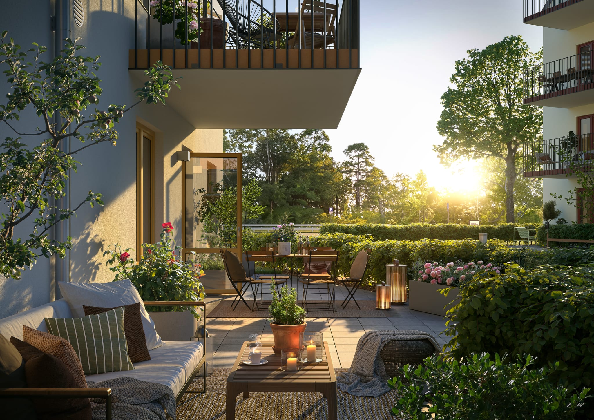Det finns kvarter som verkligen känns som hemma. Lite som förr. Ombonade. Trygga. Gemytliga. Där varje knut, vinkel och vrå känns välkomnande. Där det går att sluta ögonen och ändå hitta rätt. Brf Papilio kommer att innehålla precis detta. Här planeras för 48 bostadsrätter med stora balkonger och uteplatser runt en lugn och skyddad innergård där de boende kan njuta av bouleplan, grillplats och pergola.