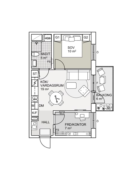 Vår 2,5a är verkligen en bostad som låter dina behov styra! Lägenheten är utformad med ett rymligt sovrum, kök och vardagsrum i öppenplanlösning och med ett stort förråd. Här kan du välja bort förrådet och få ett större kök/vardagsrum då du kan ha möjlighet att hyra förråd i källaren. Eller varför inte behålla halvrummet och nyttja det som kontor eller barnrum?! Perfekt för den lilla familjen eller dig som söker efter ett smart och compact living! Helkaklat badrum samt balkong som vetter mot den lugna innergården är andra fördelar med bostaden.