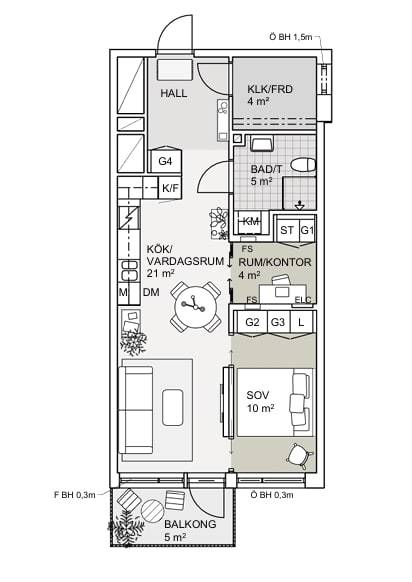 Hitta hem i denna smarta lägenhet som erbjuder både flexibilitet och komfort. Sovrummet är utrustat med skjutdörrar, vilket ger dig möjlighet att anpassa rummets funktion utan att minsta yta krävs för dörrblad. Det unika hybrida rummet är ett förråd bakom glasväggar som enkelt kan anpassas efter dina behov perfekt som kontor eller t.ex. hobbyrum. Kök i vinkel skapar en avgränsning mot hallen som erbjuder gedigen förvaring i ett stort förråd. Lägenheten har en härlig balkong i söderläge, idealisk för att njuta av soliga dagar.